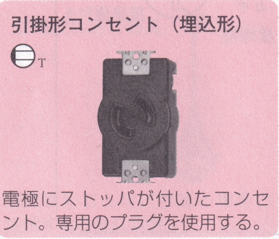 電極にストッパが付いたコンセント。専用のプラグを使用する。