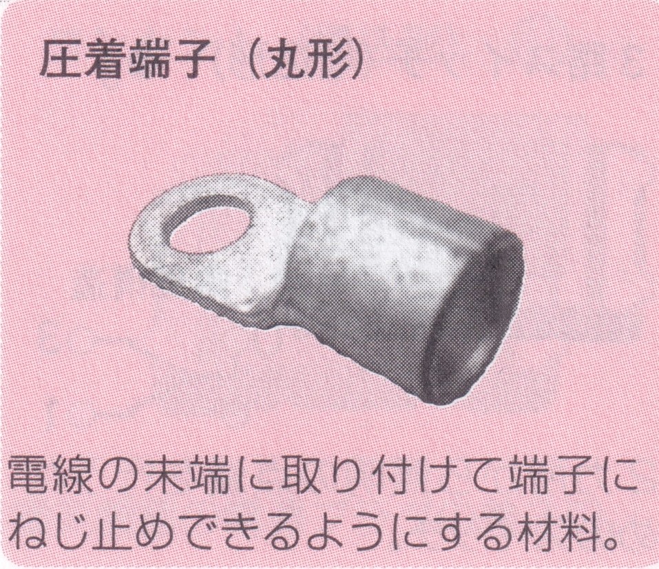 電線の末端に取り付けて端子にねじ止めできるようにする材料。