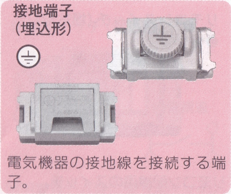 電気機器の接地線を接続する端子と接地極の面方をもつ。